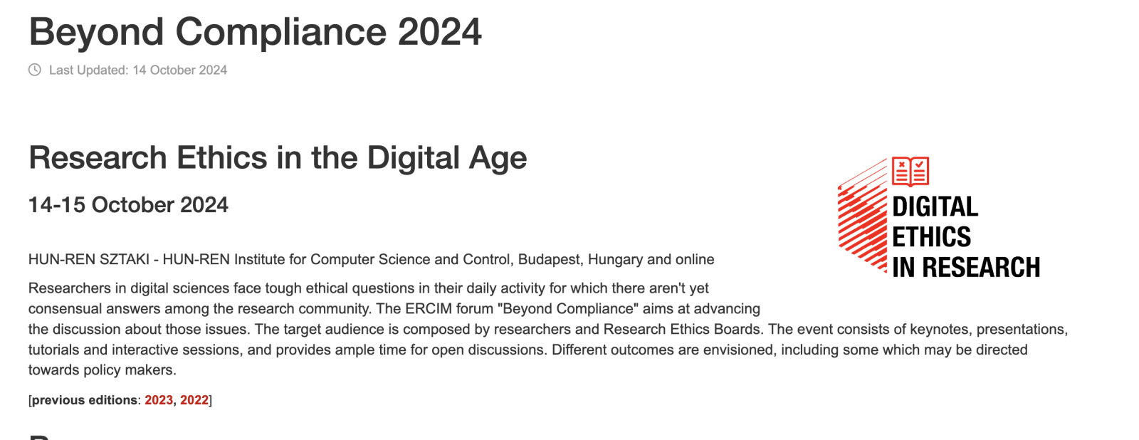 More details about the programme are available at: https://www.ercim.eu/beyond-compliance.